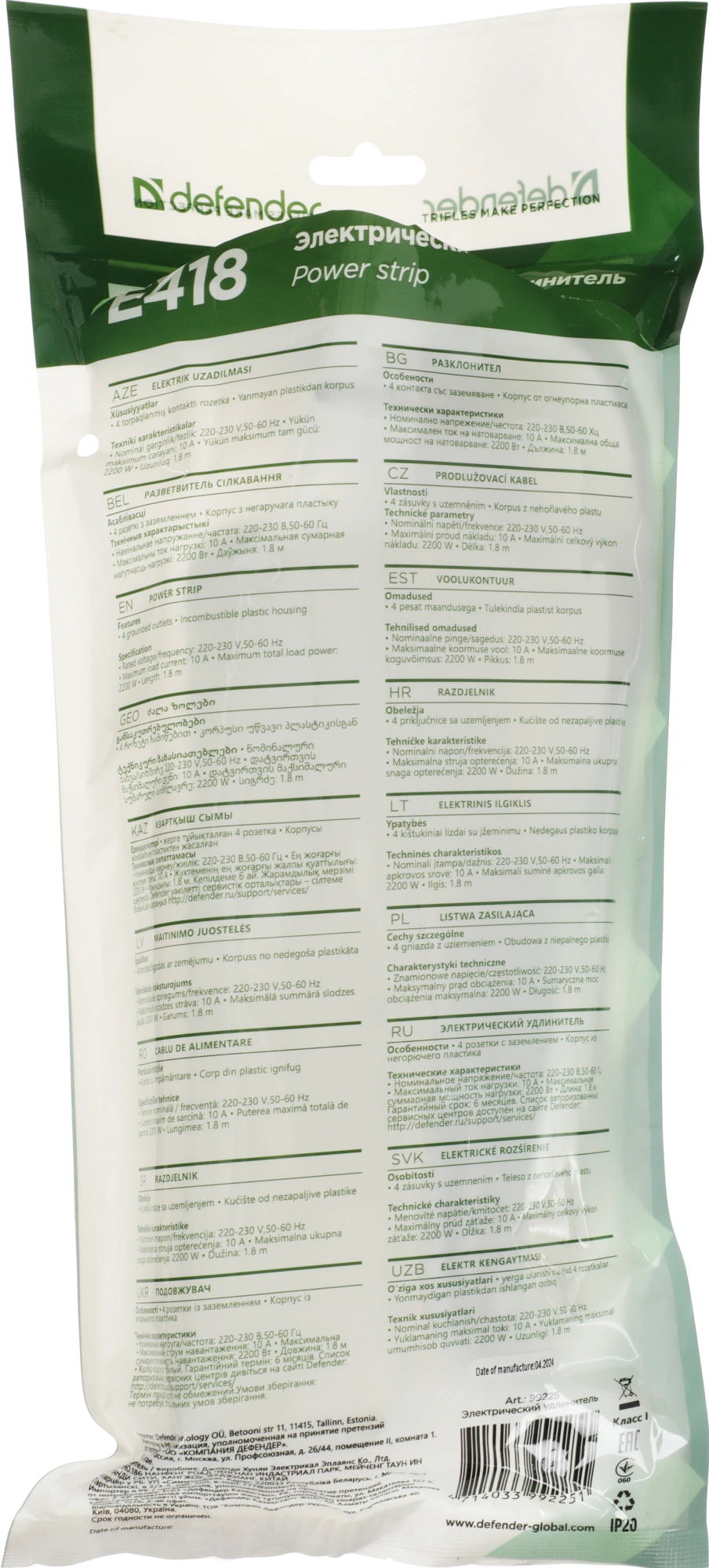 Удлинитель E418 1.8M 4OUTL. 99225 DEFENDER
