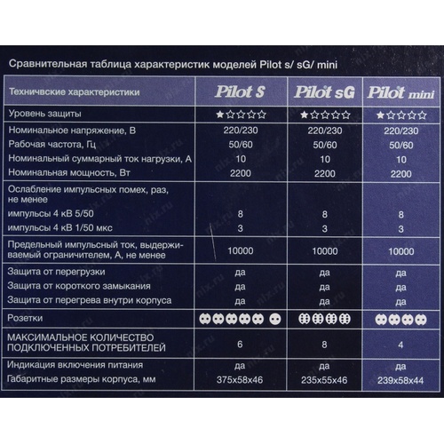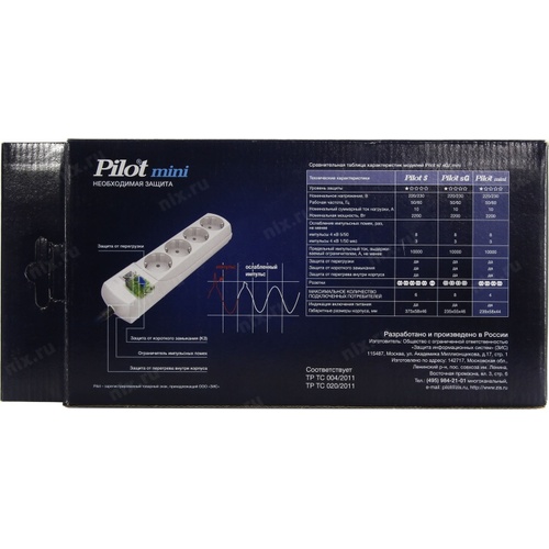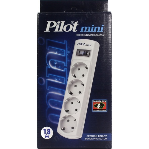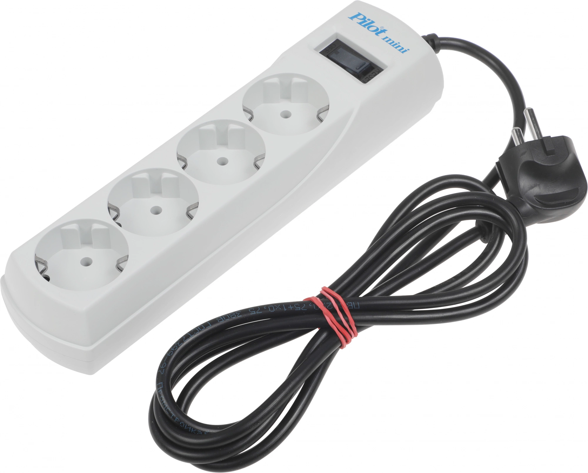 Сетевой фильтр Сетевой фильтр PILOT mini, 1,8м, 4 розетки, 10А/2,2кВт, св.серый, Россия <Pilot mini 1.8m>