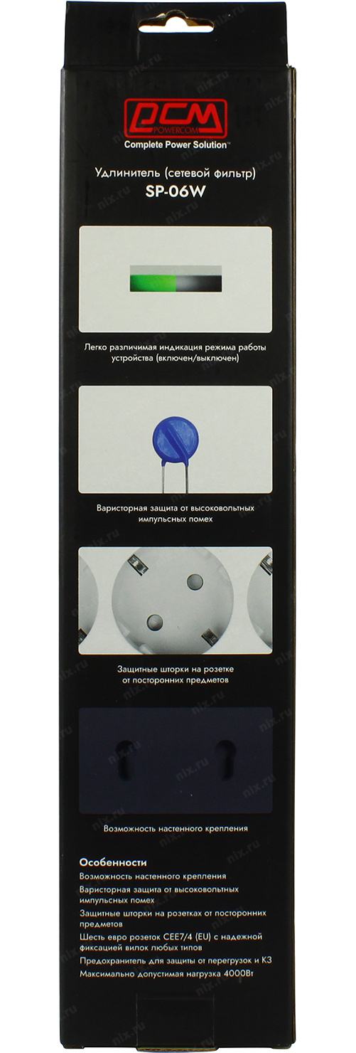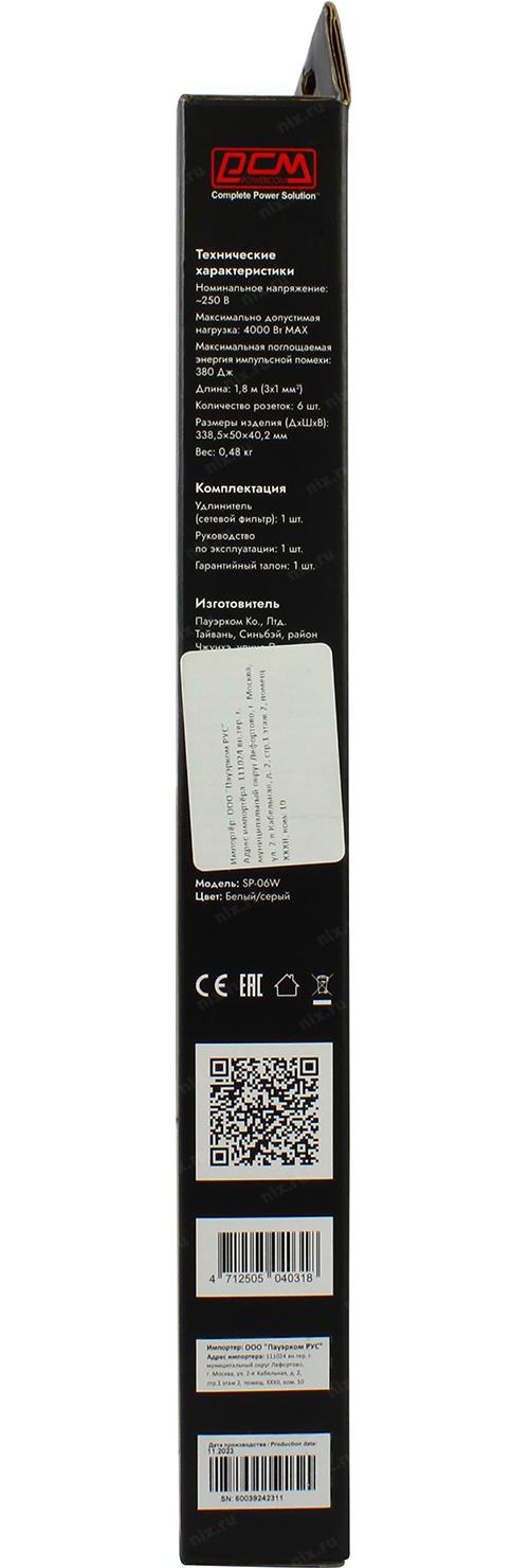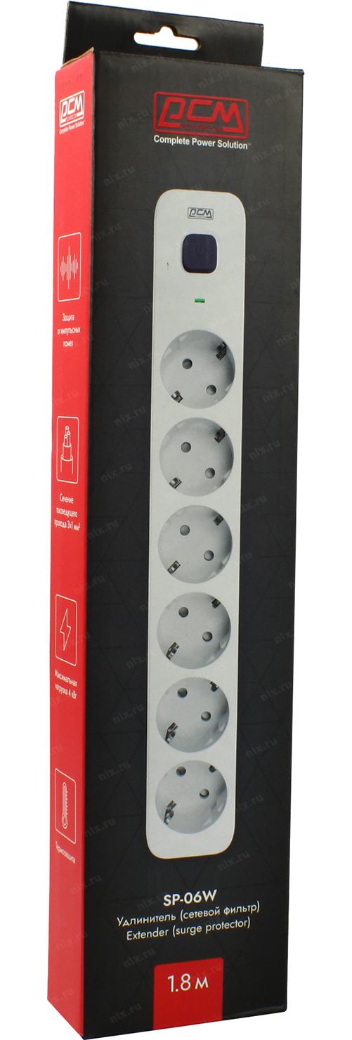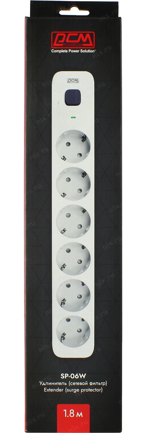 Поверком Powercom Сетевой фильтр SP-06W 1,8 м 1.8м (6 розеток) белый/серый (коробка) (1928698) [SP-06W1,8м] | НИКС Екатеринбург
