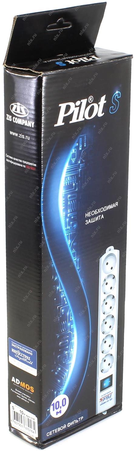 Сетевой фильтр Pilot S 10м (6 розеток) белый (коробка) 016