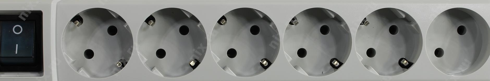 5 розеток евростандарт с заземлением, 1 розетка без заземляющего контакта