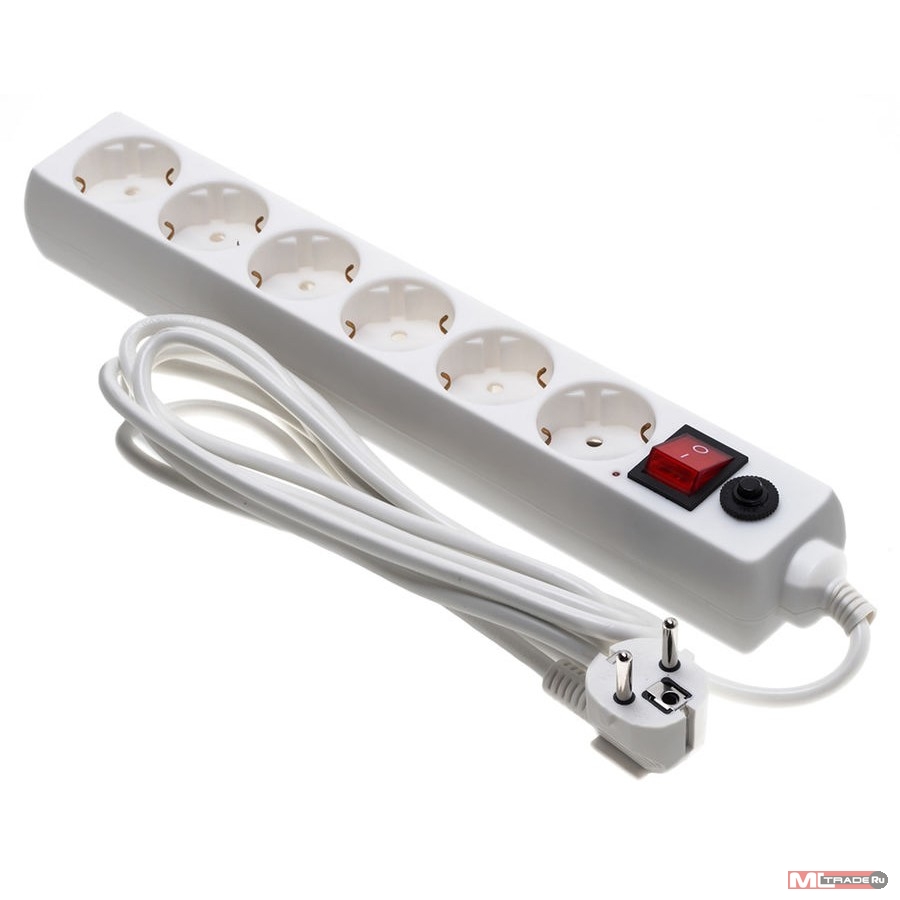 Сетевой фильтр Buro 600SH-16-3-W 3м (6 розеток) белый (коробка) (продается кратно 6 шт.)