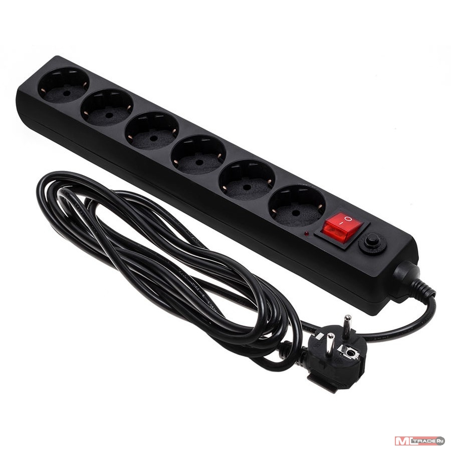 Сетевой фильтр Buro 600SH-16-3-B 3м (6 розеток) черный (коробка) (продается кратно 6 шт.)
