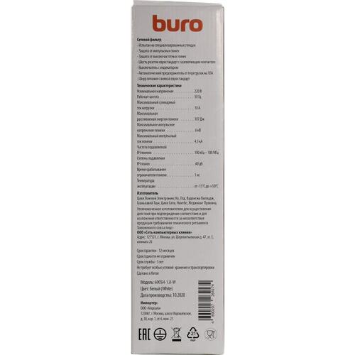 Сетевой фильтр Buro 600SH-1.8-W 1.8м (6 розеток) белый (коробка) (продается кратно 6 шт.)