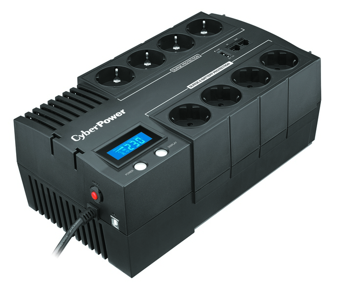 ИБП CyberPower BR1000ELCD (Line-Interactive, 1000VA/600W USB/RJ11/45/USB charger A/С (4+4 EURO), 12В/9 Ач х 1)