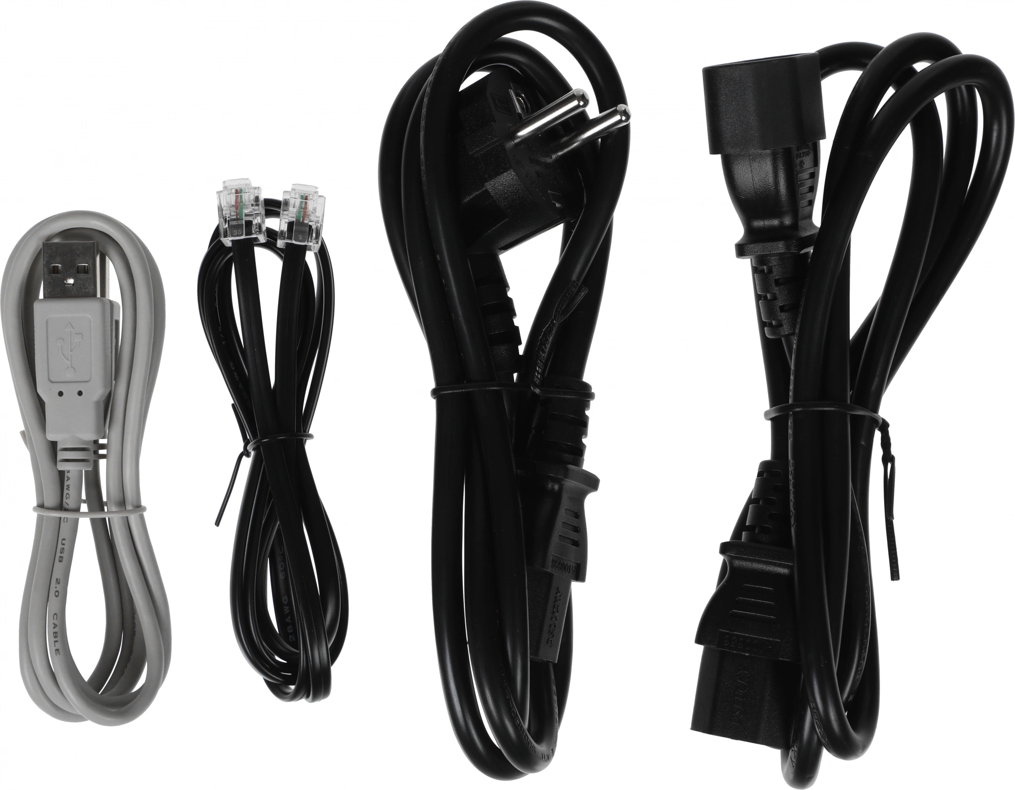 CD-диск, кабель для подключения защищаемого устройства, кабель USB, кабель питания, крепеж для установки в стойку, телефонный кабель