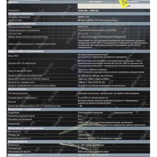 Источник бесперебойного питания Powercom Back-UPS IMPERIAL, Line-Interactive, 3000VA/1800W, Tower, 6*IEC320-C13 (6 batt), LCD, USB (747929) <IMD-3000AP>