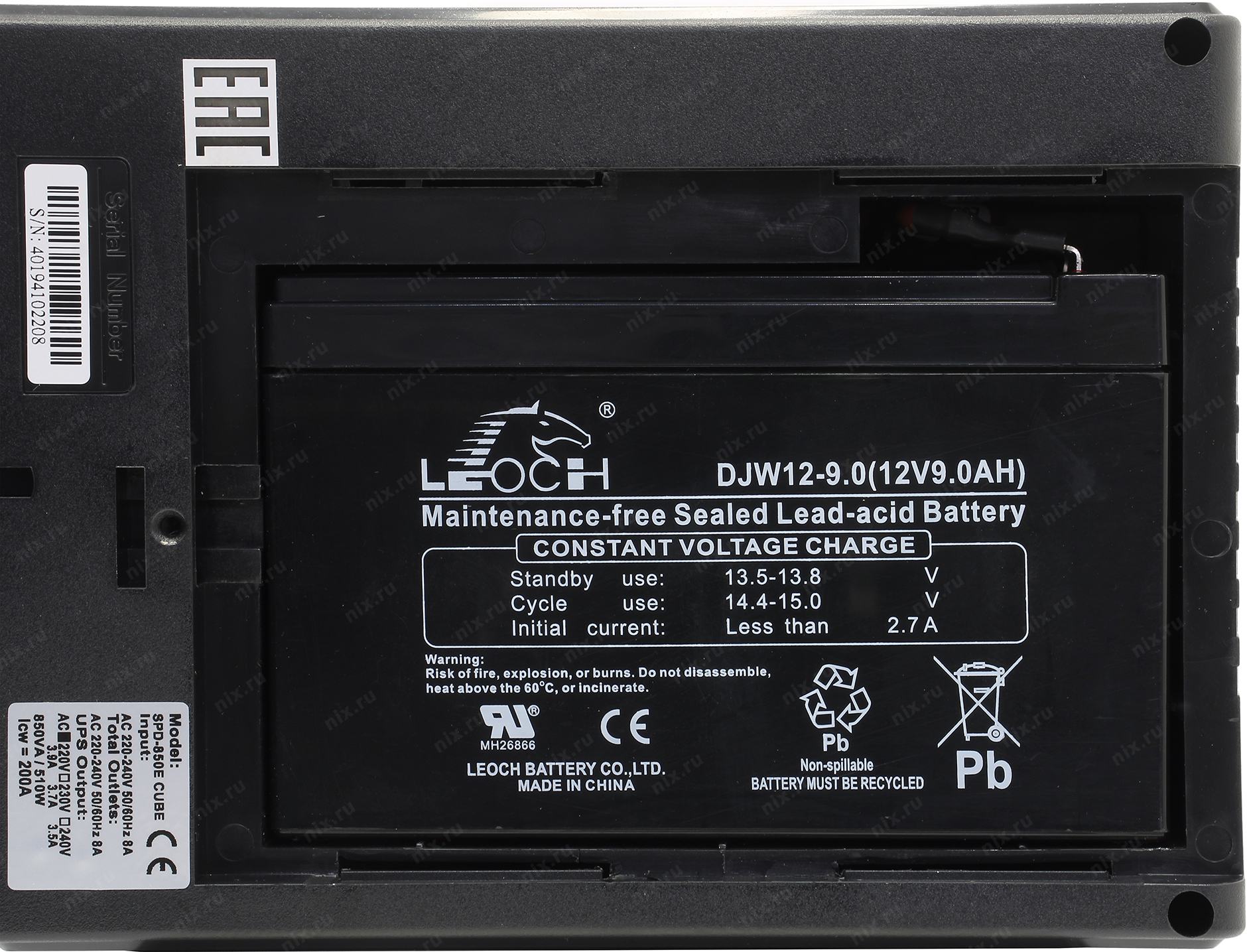 1 аккумулятор 12В, 9 Ач.