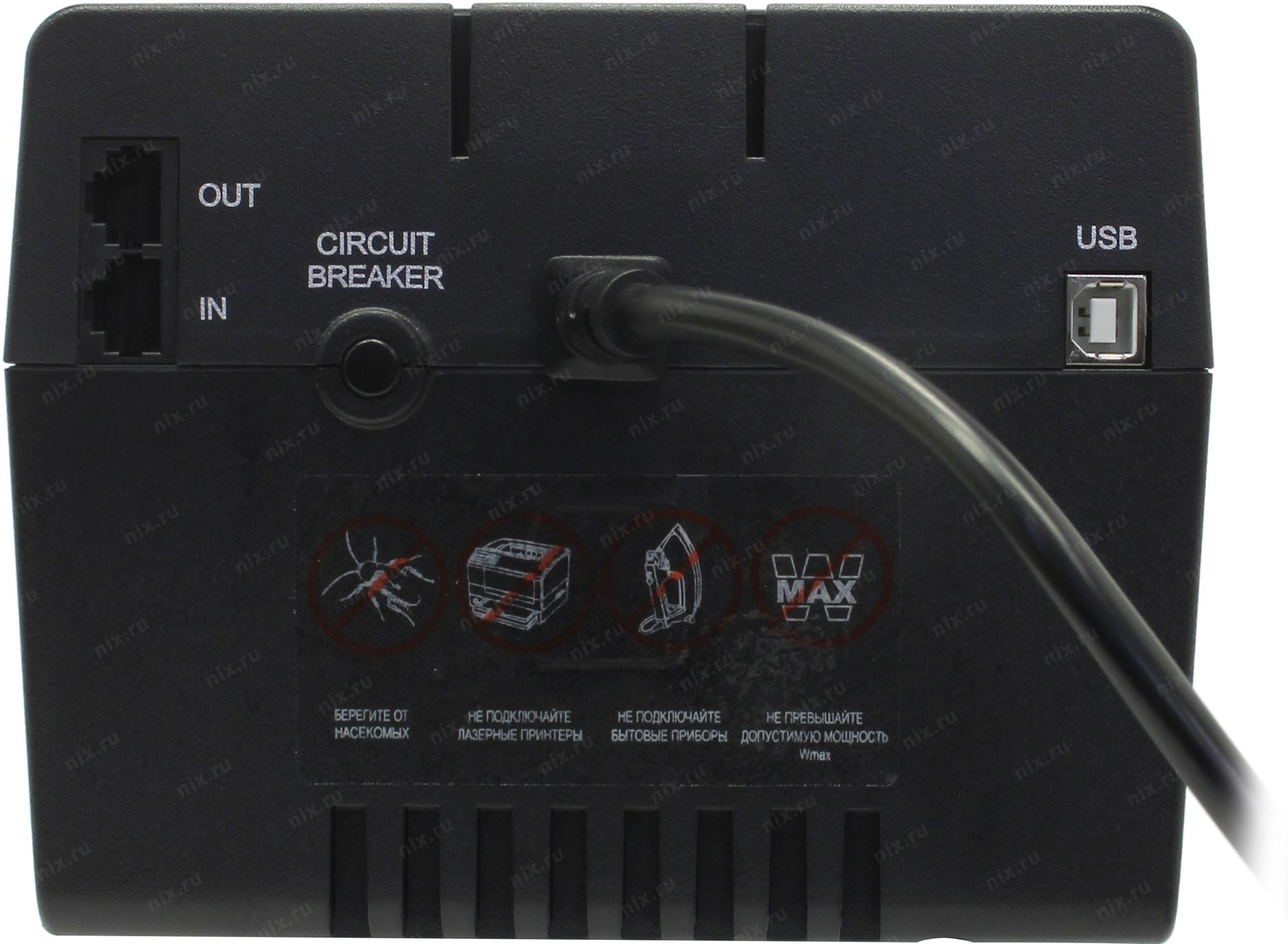 ИБП автоматически отключается, если перегрузка превышает 110% от максимальной мощности в течение 60 секунд или 130% в течение 3 секунд