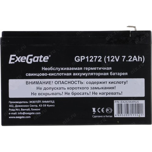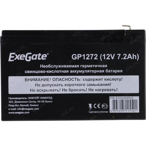 Батареи Exegate EX282964RUS Аккумуляторная батарея GP1272 (12V 7.2Ah 1227W, клеммы F2)