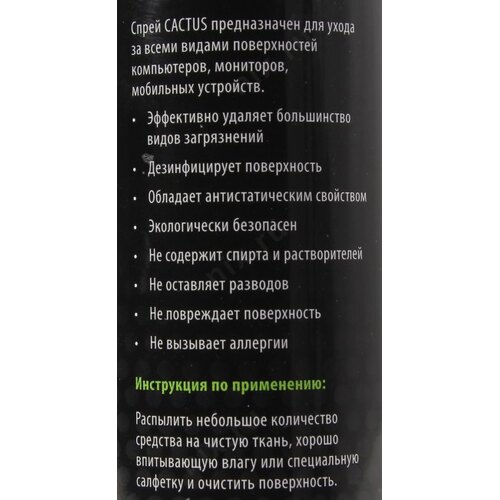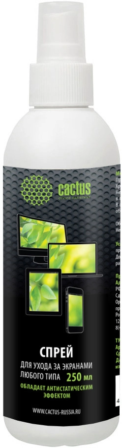 Чистящие средства CACTUS Спрей CS-S3002 для чистки LCD-мониторов, КПК, мобильных телефонов, 250 мл
