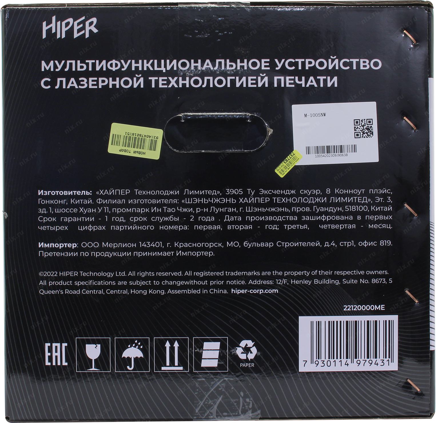 МФУ лазерный Hiper M-1005NW (Bl) A4 Net WiFi черный | НИКС Екатеринбург