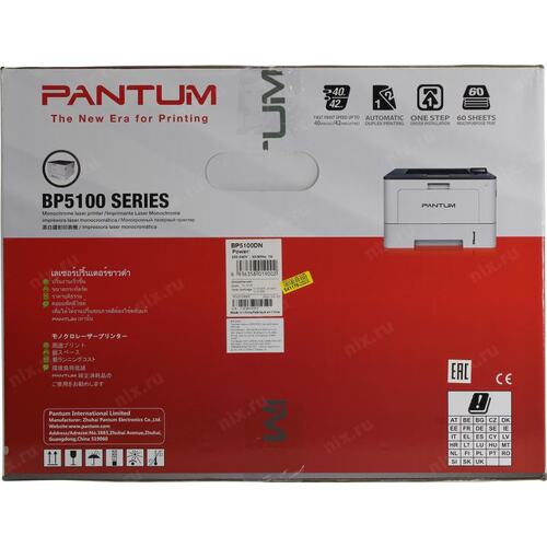 Pantum BP5100DN, Принтер Mono Laser, дуплекс, A4, 40 стр/мин, 1200x1200 dpi, 512 MB RAM, лоток 250 листов, USB, LAN, старт.картр. 3000стр. (проектная модель)