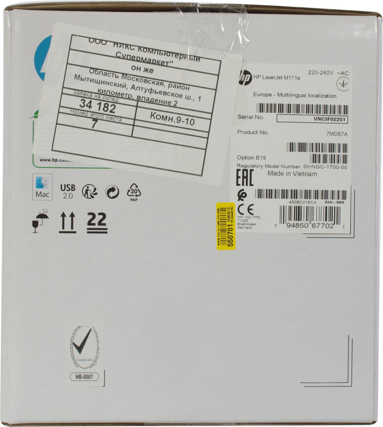 Принтер лазерный HP LaserJet M111a (7MD67A) A4 белый