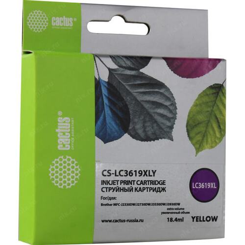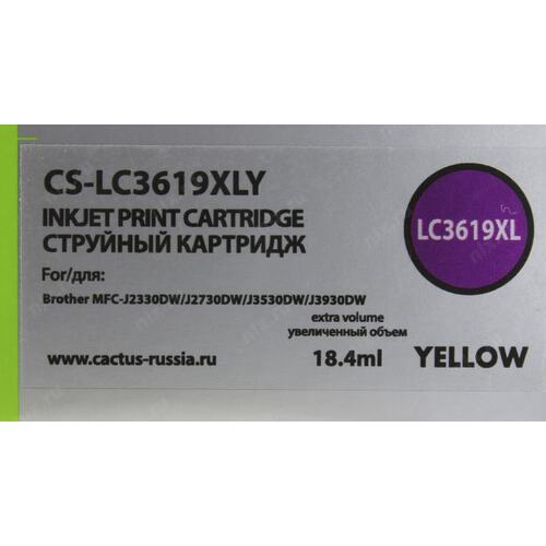 Картридж струйный Cactus CS-LC3619XLY желтый (19.4мл) для Brother MFC-J2330DW/J2730DW/J3530DW/J3930DW с чипом