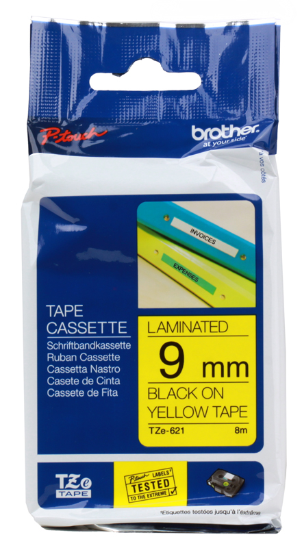 Этикетка Brother Наклейка ламинированная TZE-621 (9мм черн шрифт на жёлтом фоне, длина 8м)