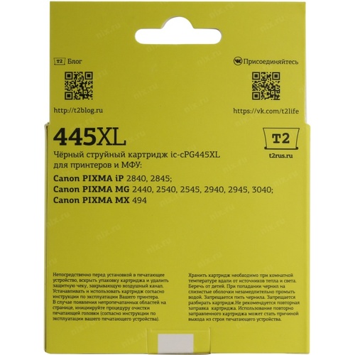 Расходные материалы T2 PG-445 XL Картридж (IC-CPG445XL) для Canon PIXMA iP2840/2845MG2440/2540/2940/2945/MX494, черный | НИКС Екатеринбург