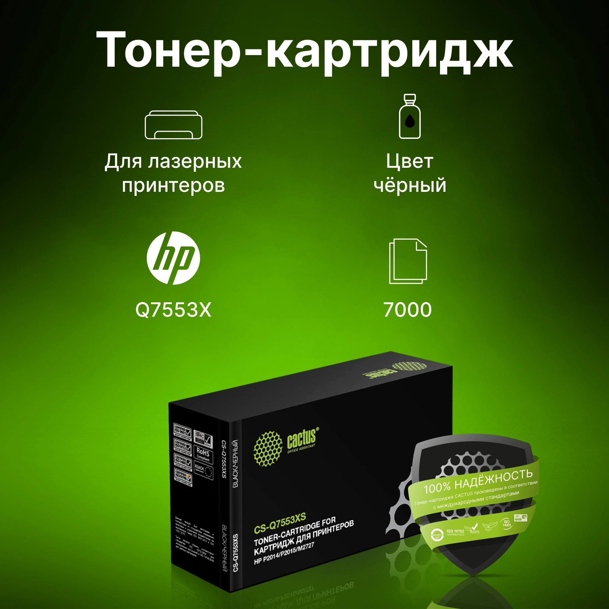 Картридж Cactus CS-Q7553X(S) для HP LJ P2015/2014 P2727mfp