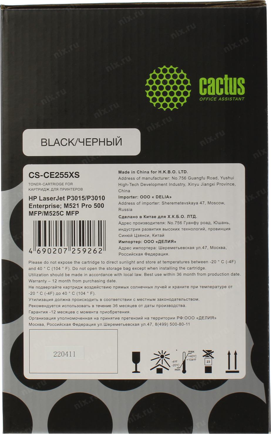 Картридж Cactus CS-CE255X(S) для HP LJ P3015