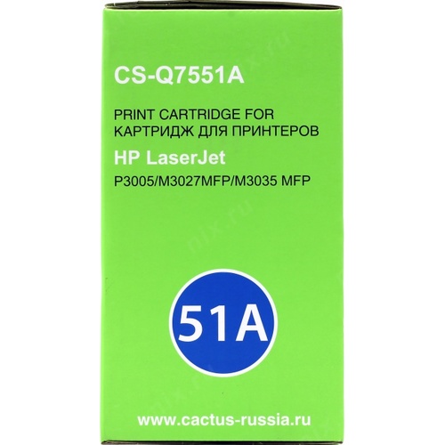 Расходные материалы CACTUS Q7551A Картридж (CS-Q7551A) для LJ P3005/M3027mfp/M3035mfp (6500 стр.)