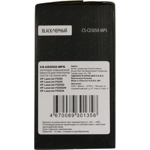 Картридж лазерный Cactus CS-CE505X-MPS CE505XX черный (13000стр.) для HP LaserJet P2050 /P2055 /P2055D/ P2055DN / P2055X