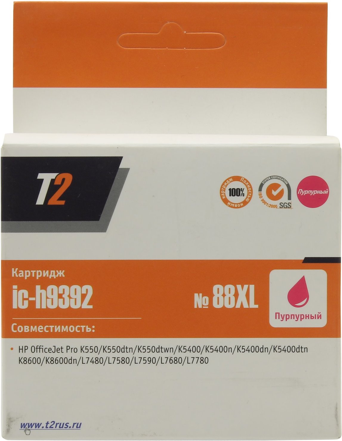 Расходные материалы T2 C9392AE Картридж №88XL для HP OfficeJet Pro K550/K5400/K8600/L7480/L7580/L7680/L7780, пурпурный, 1700 стр. [IC-H9392]