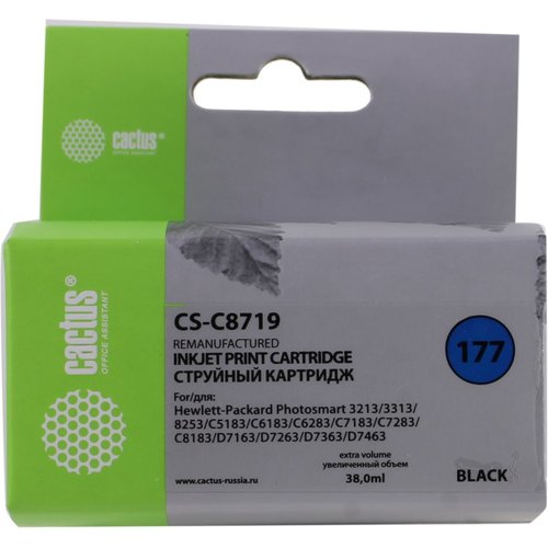 Картридж струйный Cactus CS-C8719 №177XL черный (38мл) для HP 3100/3110/3207/3210/3213/3214/3308/8250/8253/C5140