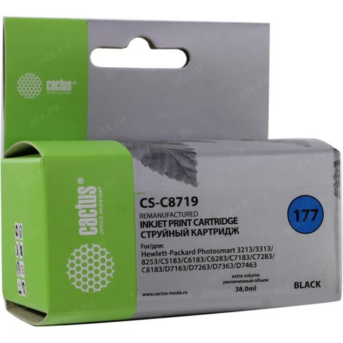 Картридж струйный Cactus CS-C8719 №177XL черный (38мл) для HP 3100/3110/3207/3210/3213/3214/3308/8250/8253/C5140 | НИКС Екатеринбург