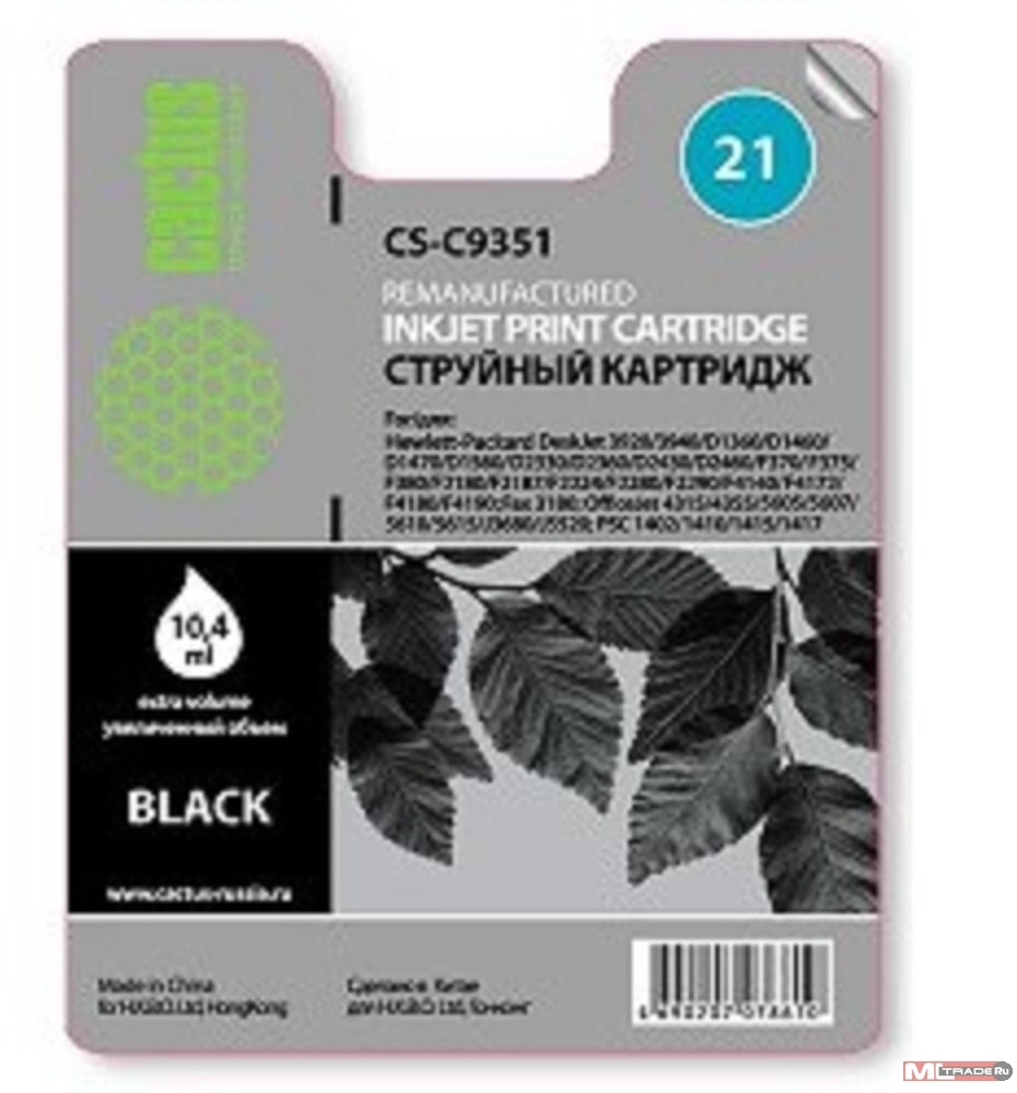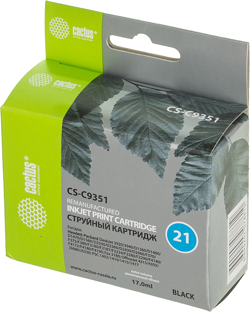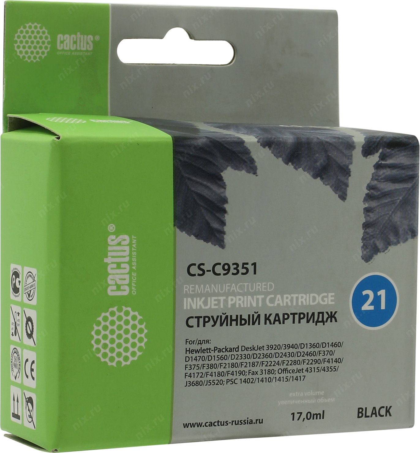 Расходные материалы Cactus C9351 Картридж струйный CS-C9351 черный для №21 HP DeskJet 3920/3940/D1360/D1460/D1470 (17ml) | НИКС Екатеринбург