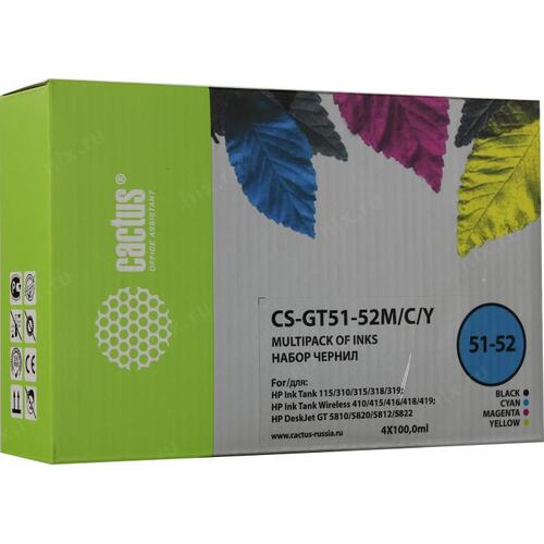 Чернила Cactus CS-GT51-52M/C/Y многоцветный набор 4x100мл для DeskJet GT 5810/5820/5812/5822