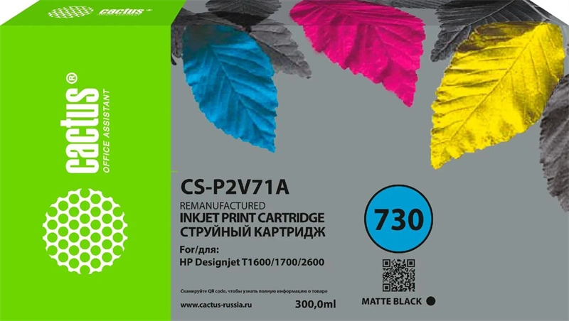 Картридж струйный Cactus CS-P2V71A №730 черный матовый (300мл) для HP Designjet T1600/1700/2600 с чипом | НИКС Екатеринбург
