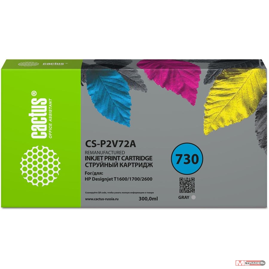 Картридж струйный Cactus CS-P2V72A №730 серый (300мл) для HP Designjet T1600/1700/2600 с чипом