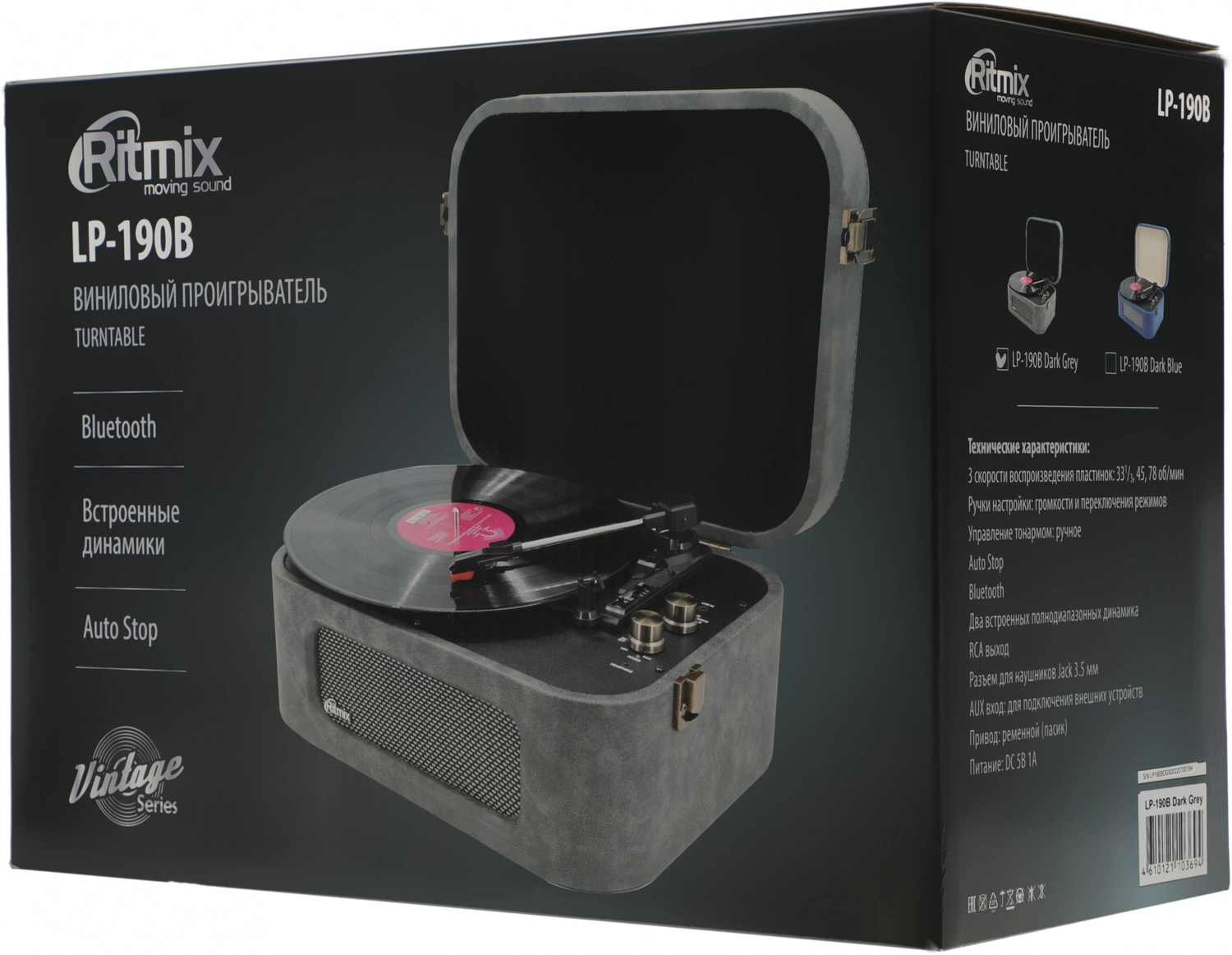 Проигрыватель винила Ritmix LP-190B полностью автоматический серый 80002009