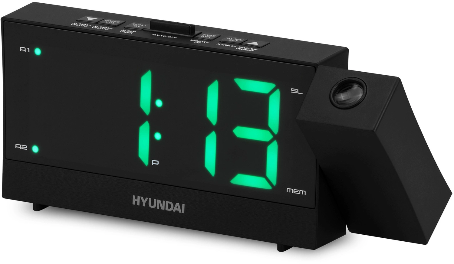 Радиобудильник Hyundai H-RCL243 черный LCD проек.изоб. подсв:зеленая часы:цифровые FM