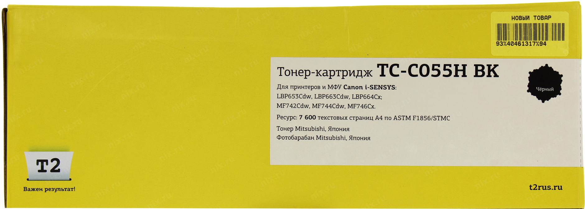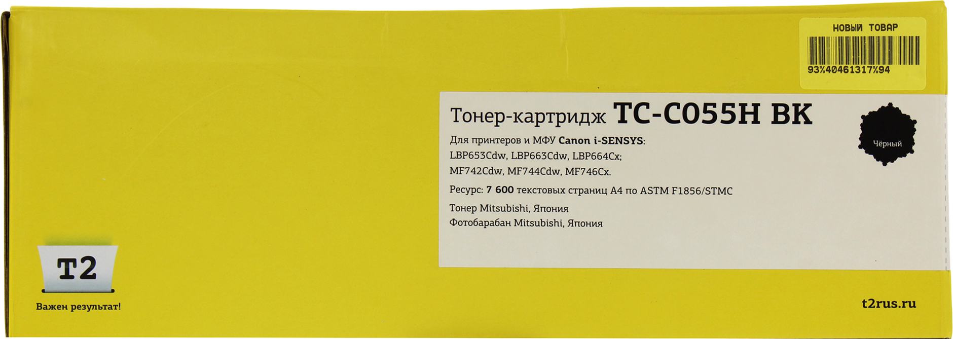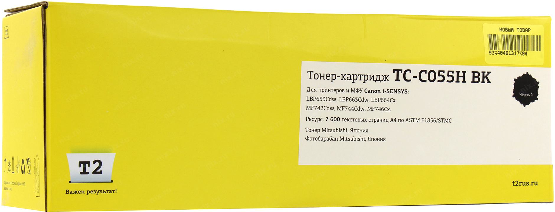 Расходные материалы T2 Cartridge 055H BK/3020C002 Картридж TC-C055H BK для Canon i-SENSYS LBP663/664/MF742/744 (7600 стр.) Черный, с чипом [TC-C055HBK]