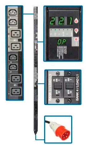 22.2kW 3-Phase Switched PDU - 12 C13 & 12 C19 Outlets, IEC 309 32A Red, 0U, Outlet Monitoring, TAA