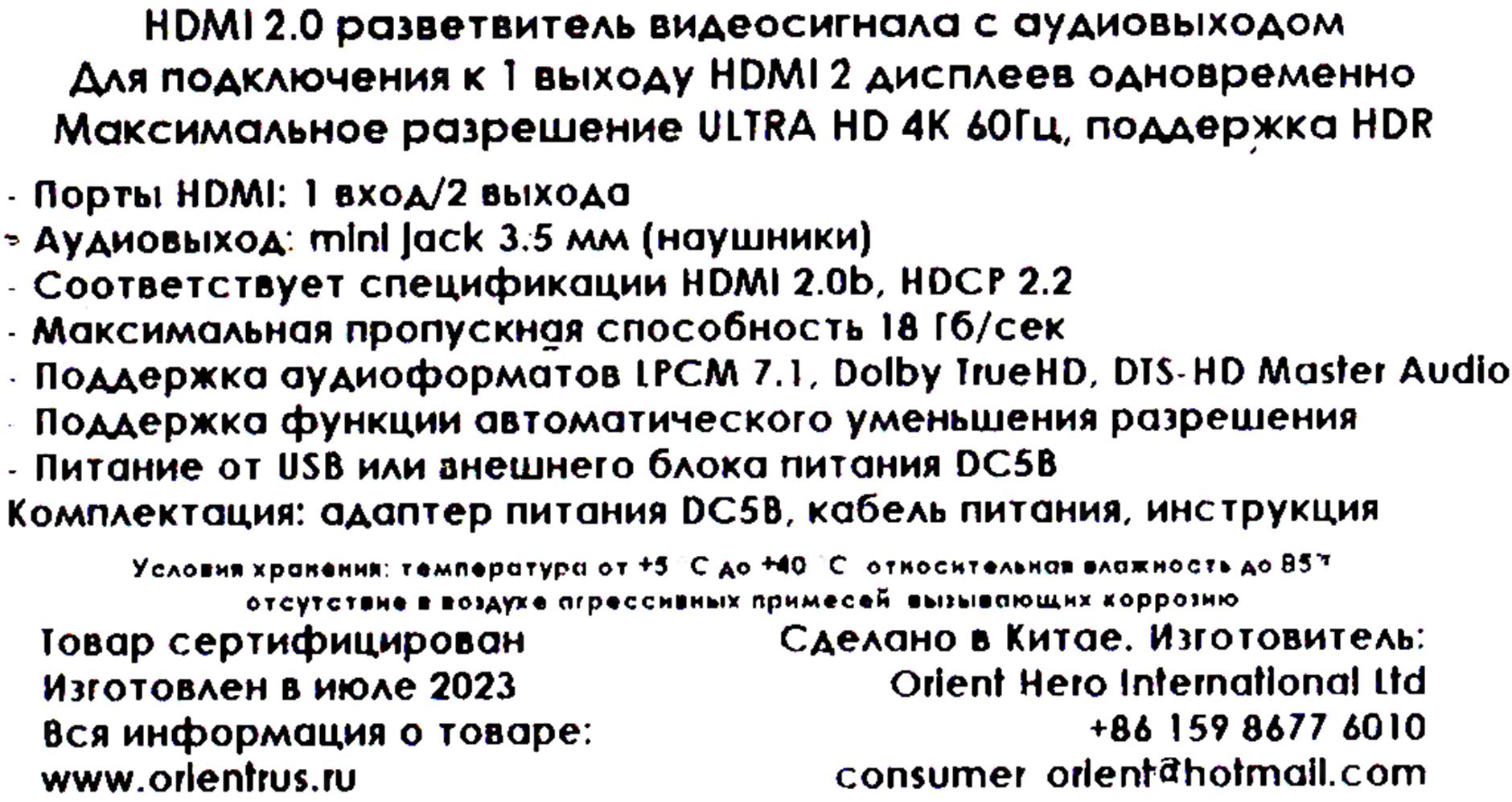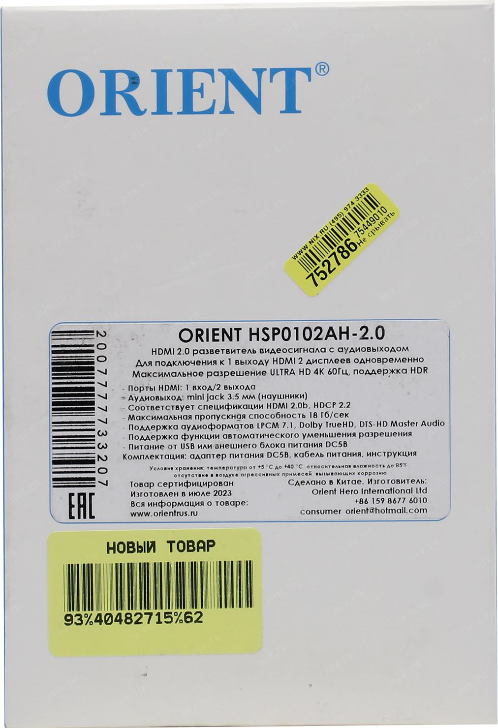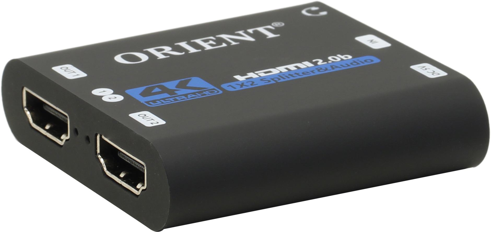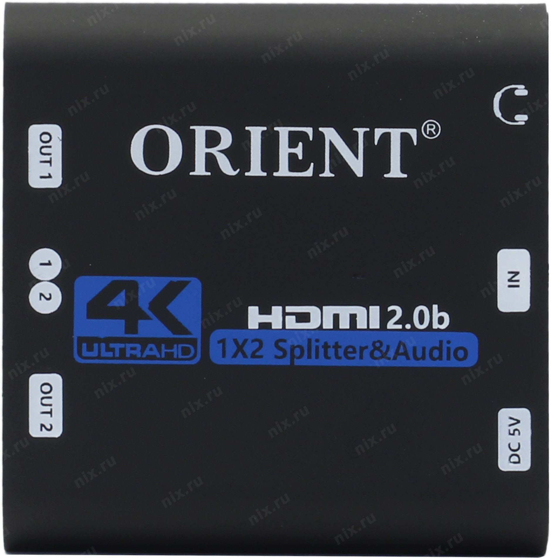 Разветвитель Orient <HSP0102AH-2.0> HDMI Splitter (1in -> 2out, Jack3.5, 2.0)