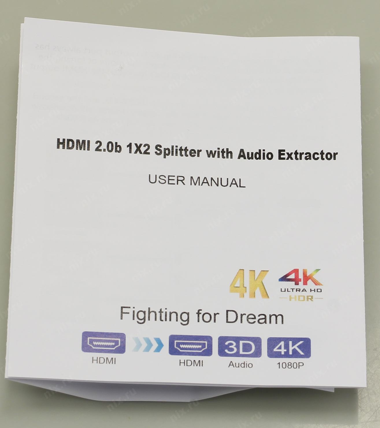 Сплиттер позволяет подключить к "одному источнику цифрового HDMI видео/аудио сигнала (медиаплееру, TV ресиверу и др.) одновременно 2 телевизора или монитора. Поддерживается передача звука, 4K Ultra HD и 3D. Есть выход на наушники