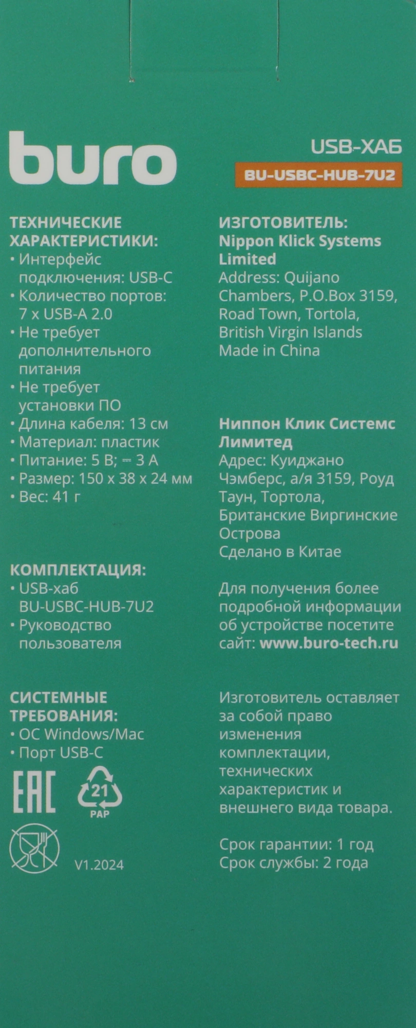 Разветвитель USB-C Buro BPH-C-P107 7порт. черный (BU-USBC-HUB-7U2)