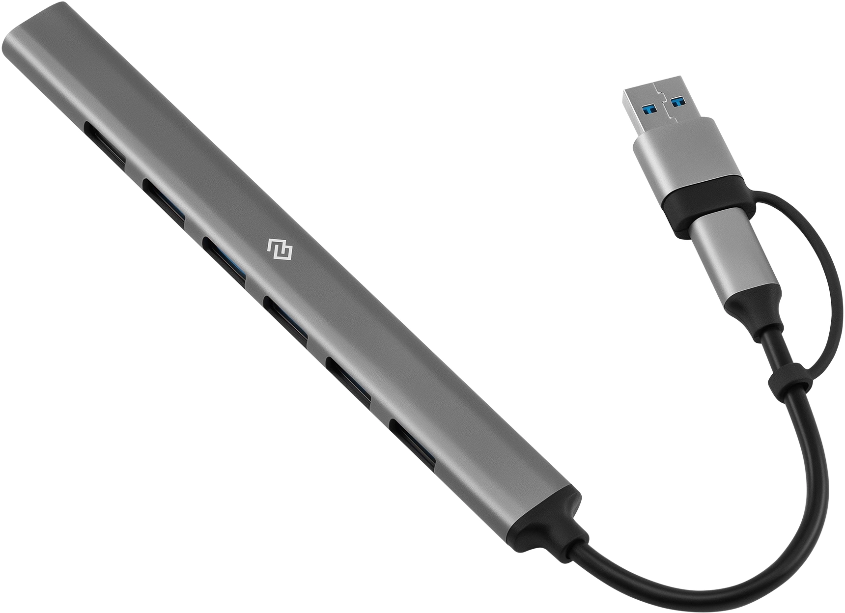 Разветвитель USB-C + USB-A Digma DHUB-7USB-AC-2.0 7порт. серебристый
