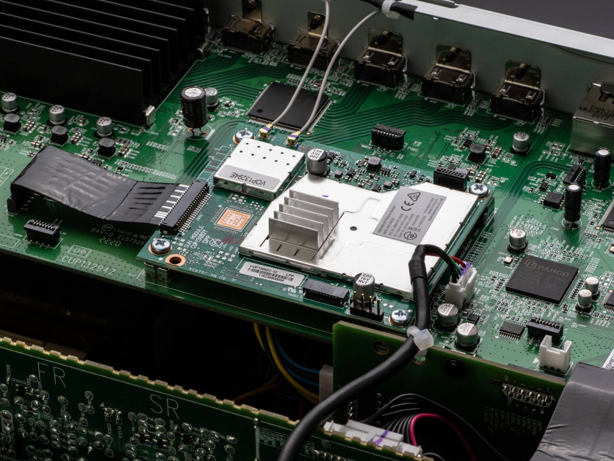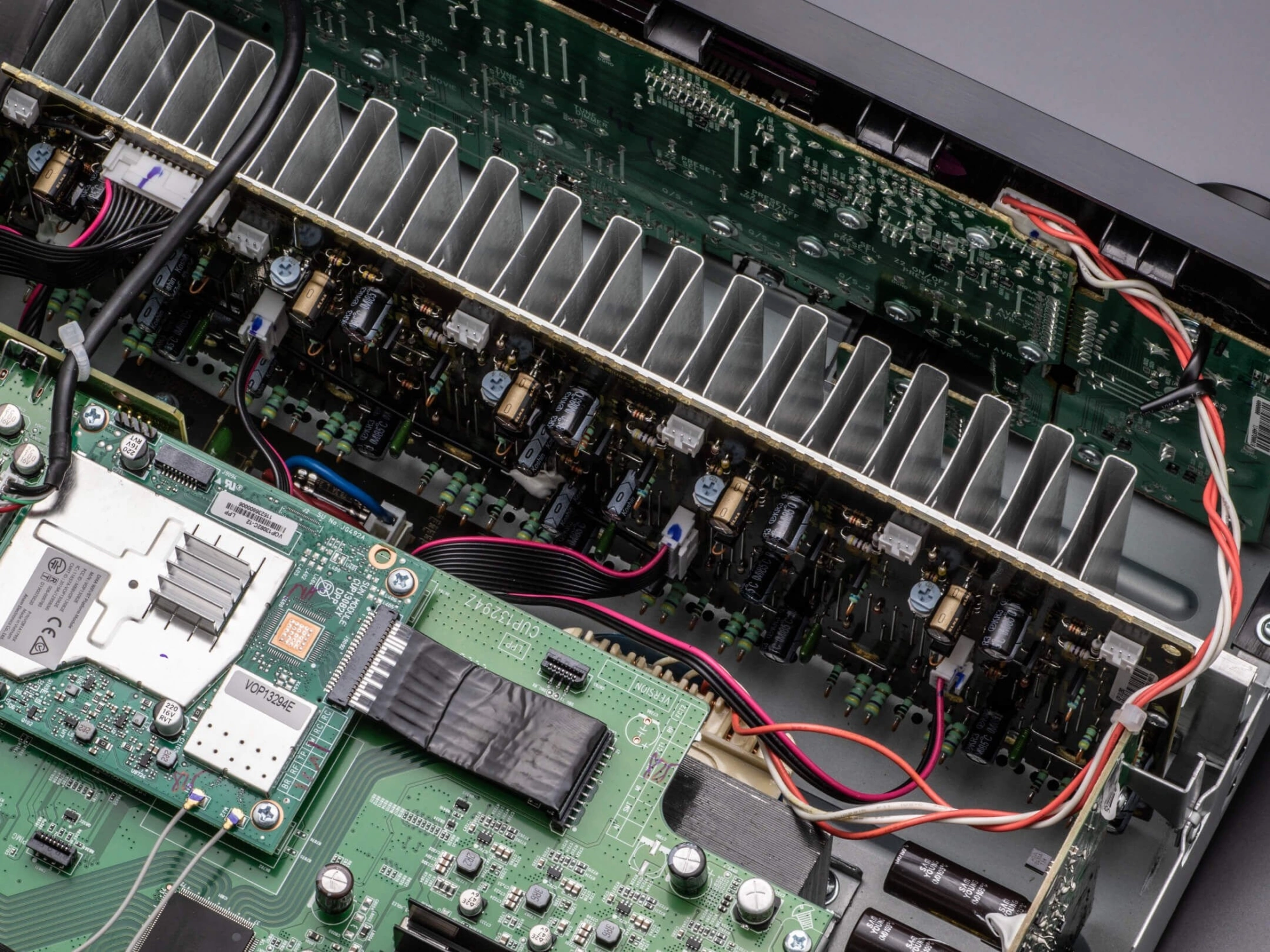 7.2-канальный 8K AV-ресивер мощностью 150 Вт на канал. Поддерживаются Dolby Atmos, DTS, Wi-Fi, Bluetooth и HEOS.