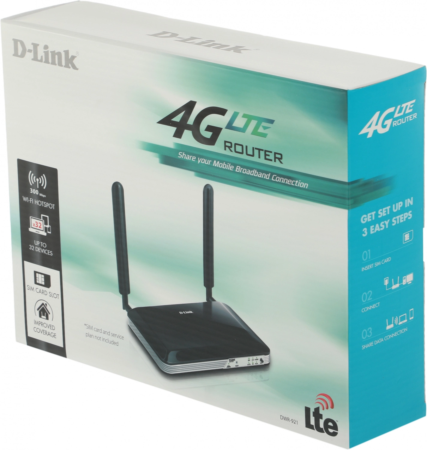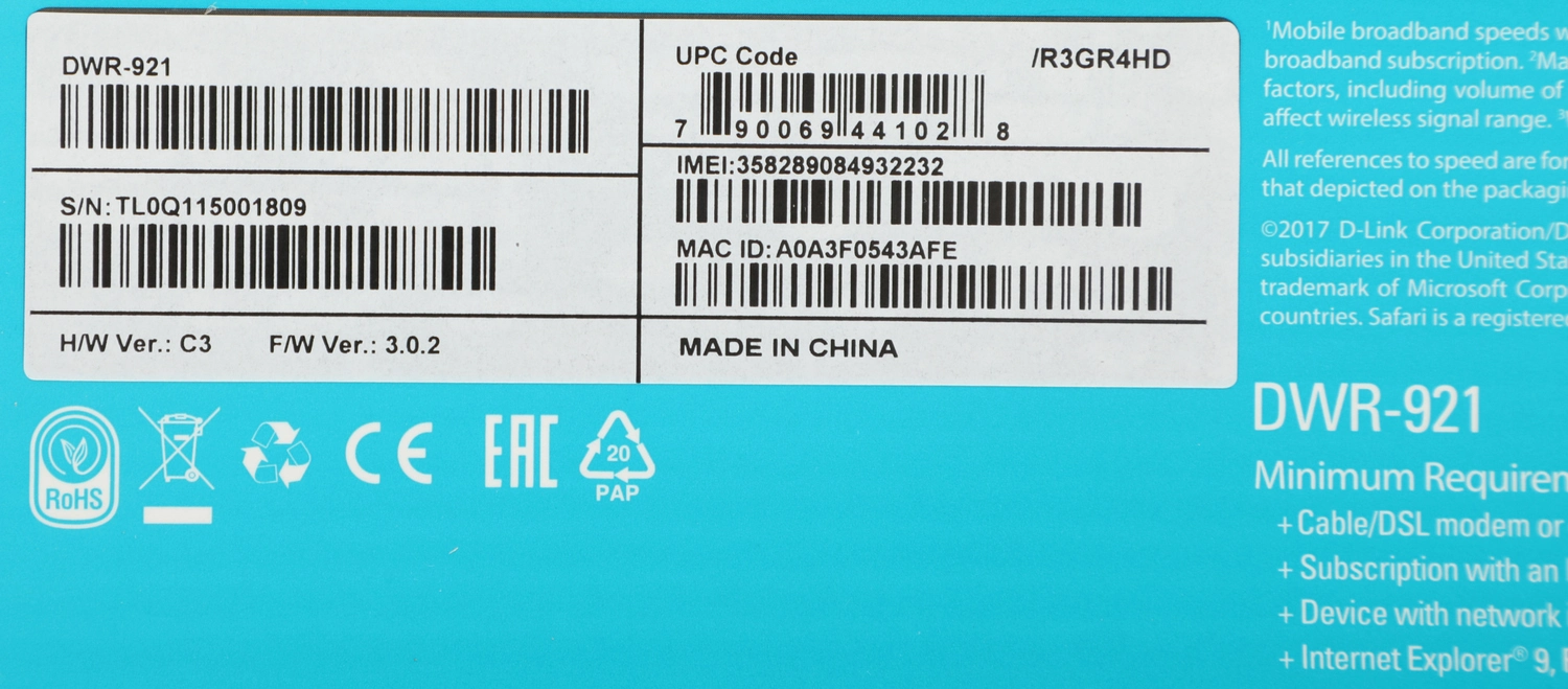 Беспроводной маршрутизатор D-Link DWR-921/ E3GR4HD с поддержкой 4G LTE. Маршрутизатор оснащен встроенным LTE-модемом, который обеспечивает высокоскоростное мобильное 3G/ 4G-соединение со скоростью приема данных до 150 Мбит/ с и скоростью передачи данных до 50 Мбит/ с.