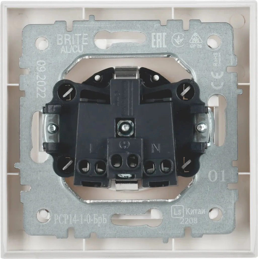 Розетка силов. IEK Brite РСР14-1-0-БрБ BR-R14-16-K01-F одинар. скрыт. зазем. штор. IP20 белый (упак.:1шт)