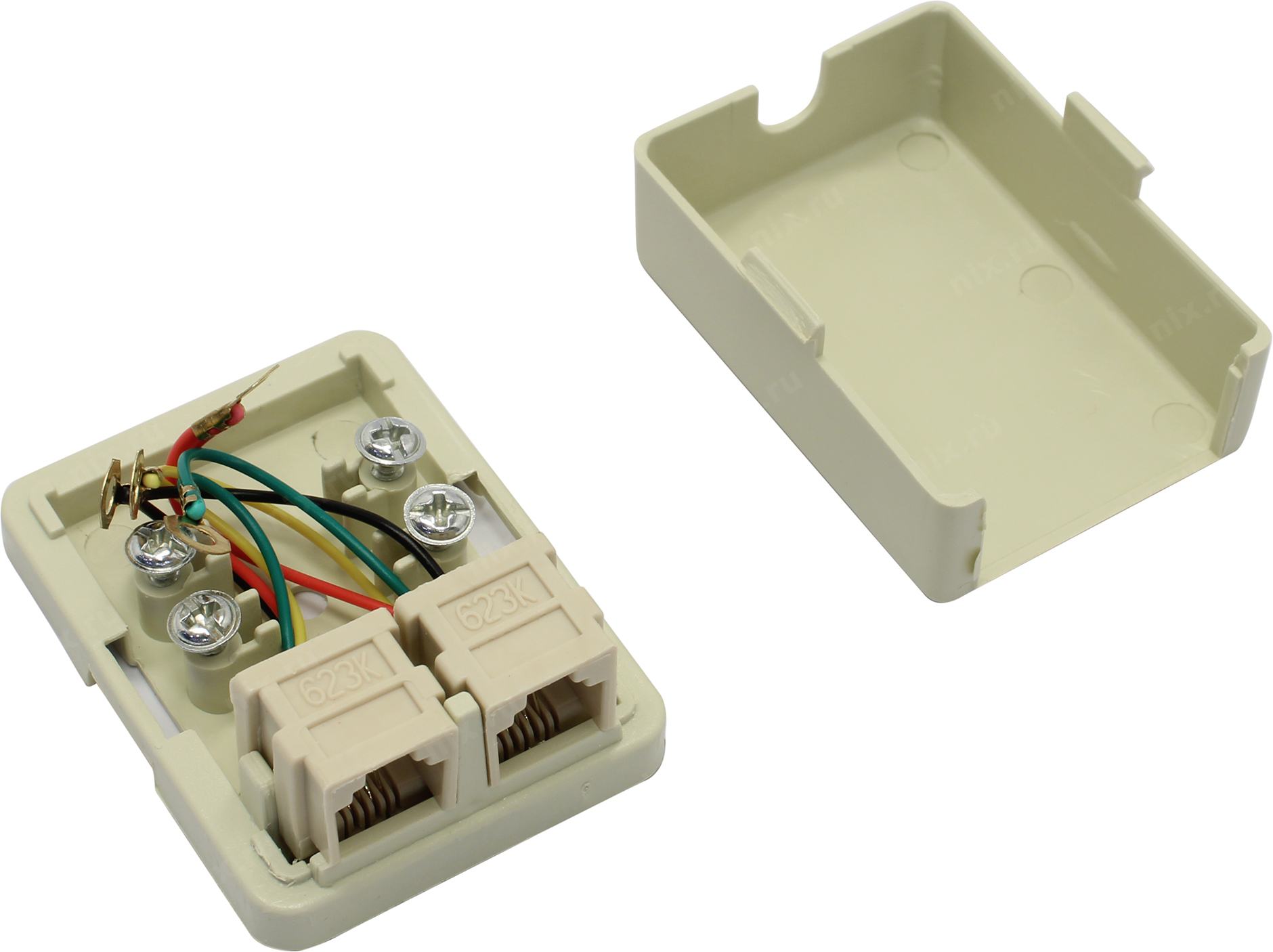 Двухпортовая телефонная розетка с портами RJ-12, предназначена для монтажа на стену