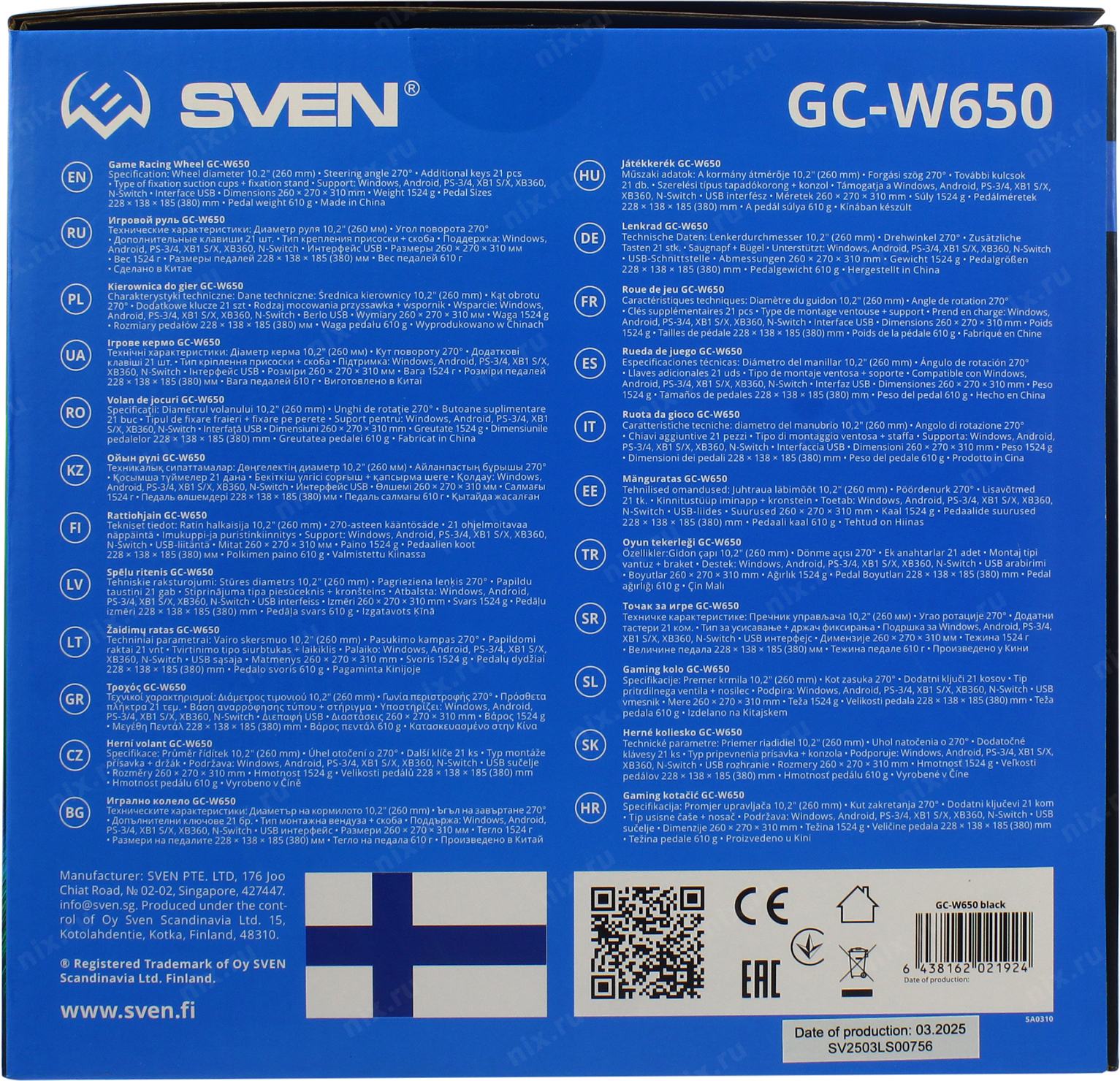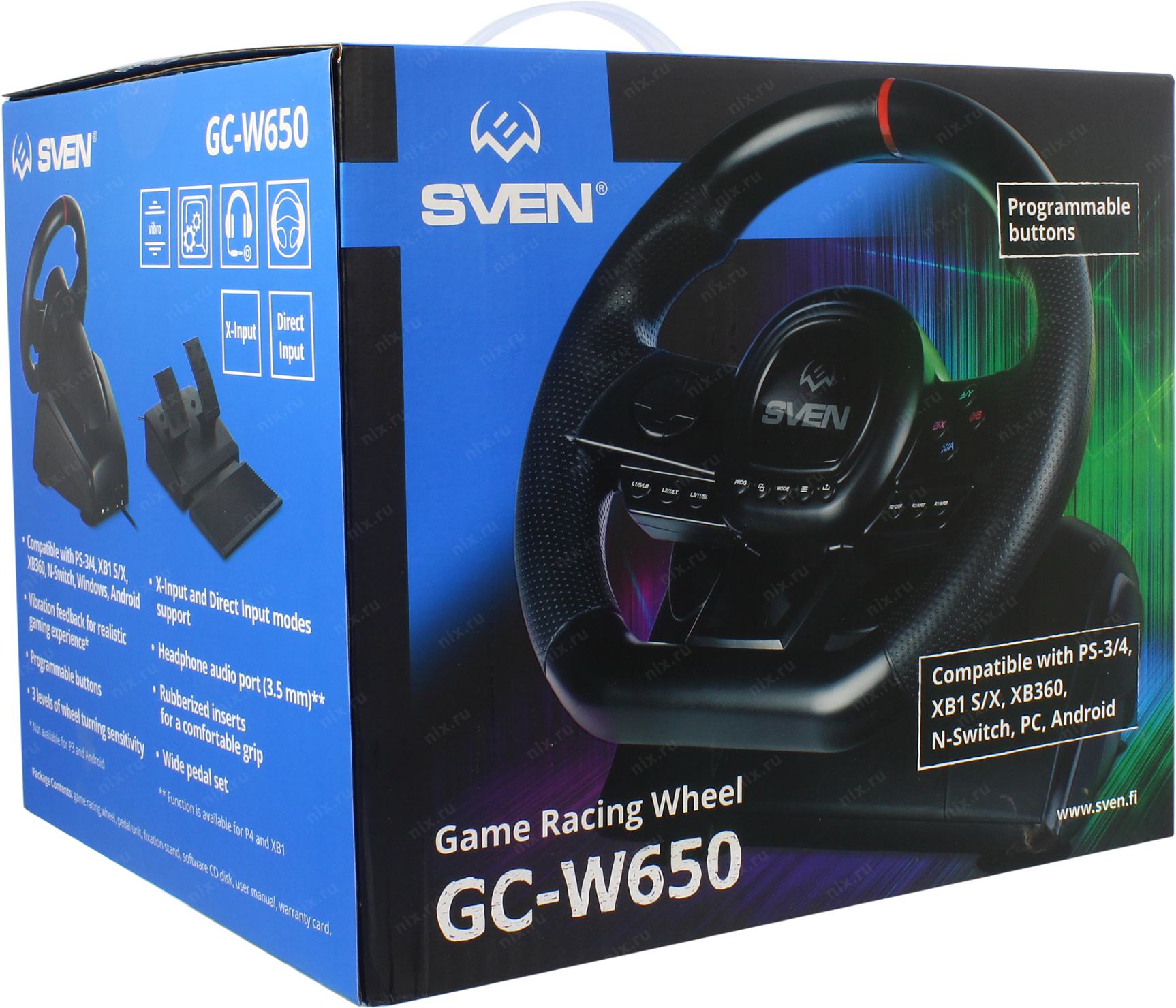 Руль SVEN GC-W650 < Black> (Vibration, рулевое колесо, педали, 21кн, USB/ PS3/ PS4/ Xbox/ Andr)