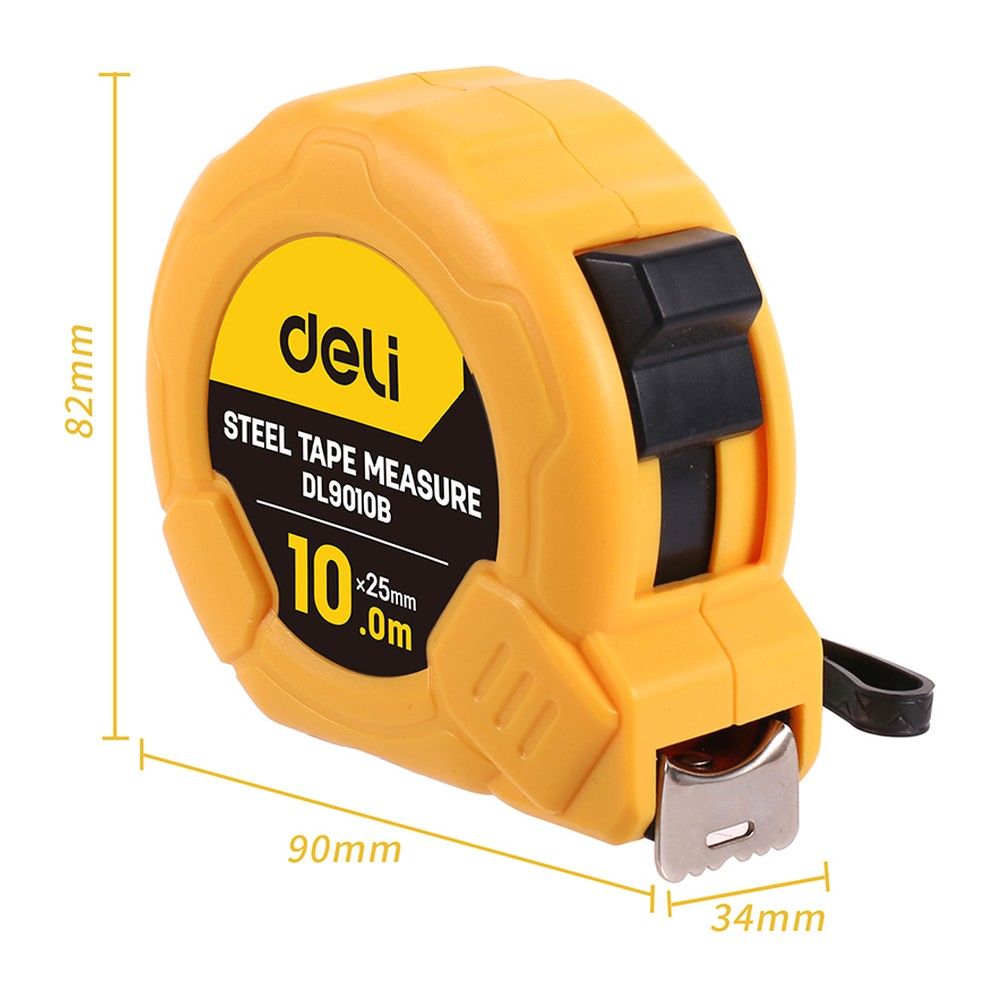 Рулетка строительная Deli DL9010B дл.полотна 10м изм.шкала в см зацеп простой желтый