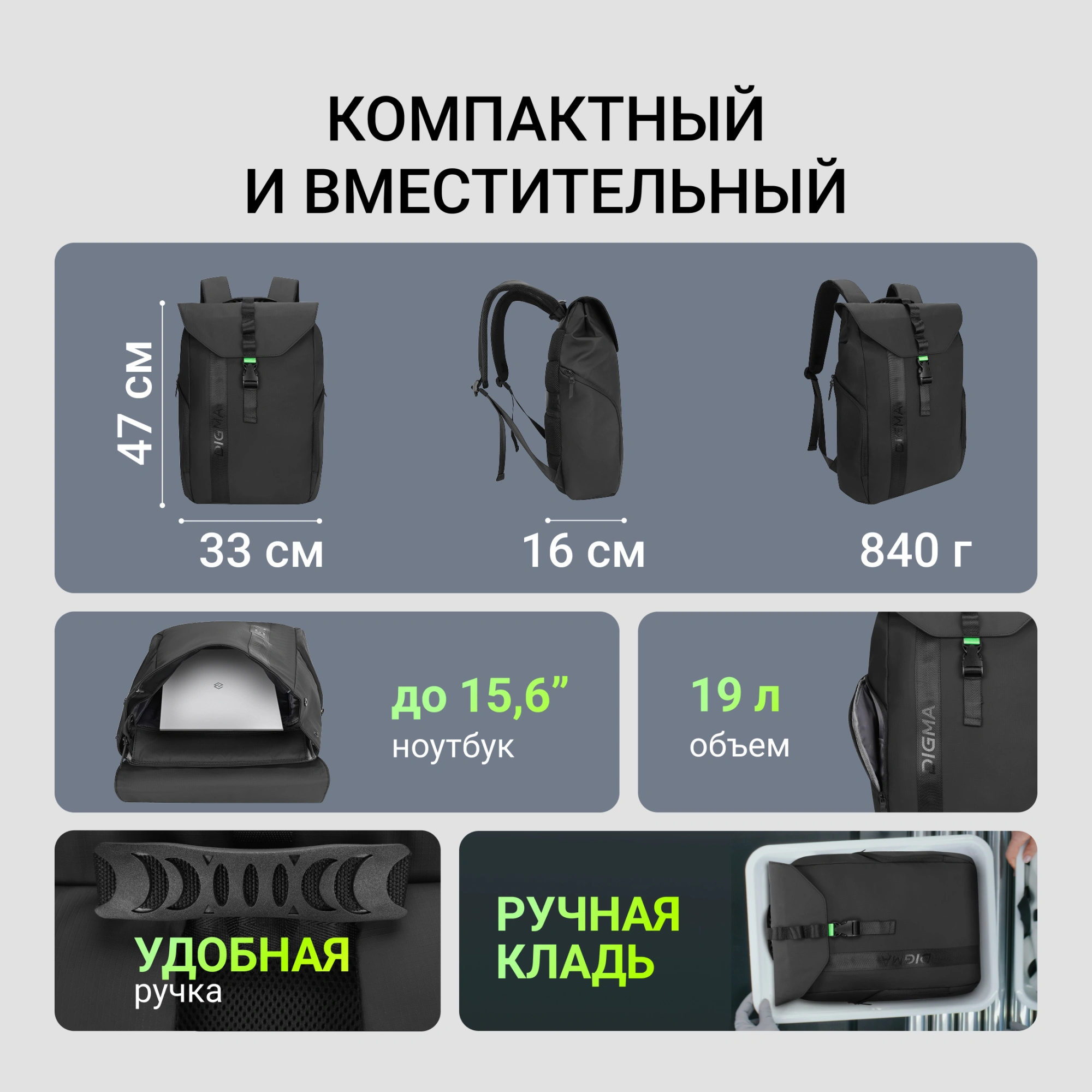 Рюкзак для ноутбука 15.6" Digma Lifestyle L1 черный полиэстер (DGBP15L1BK)