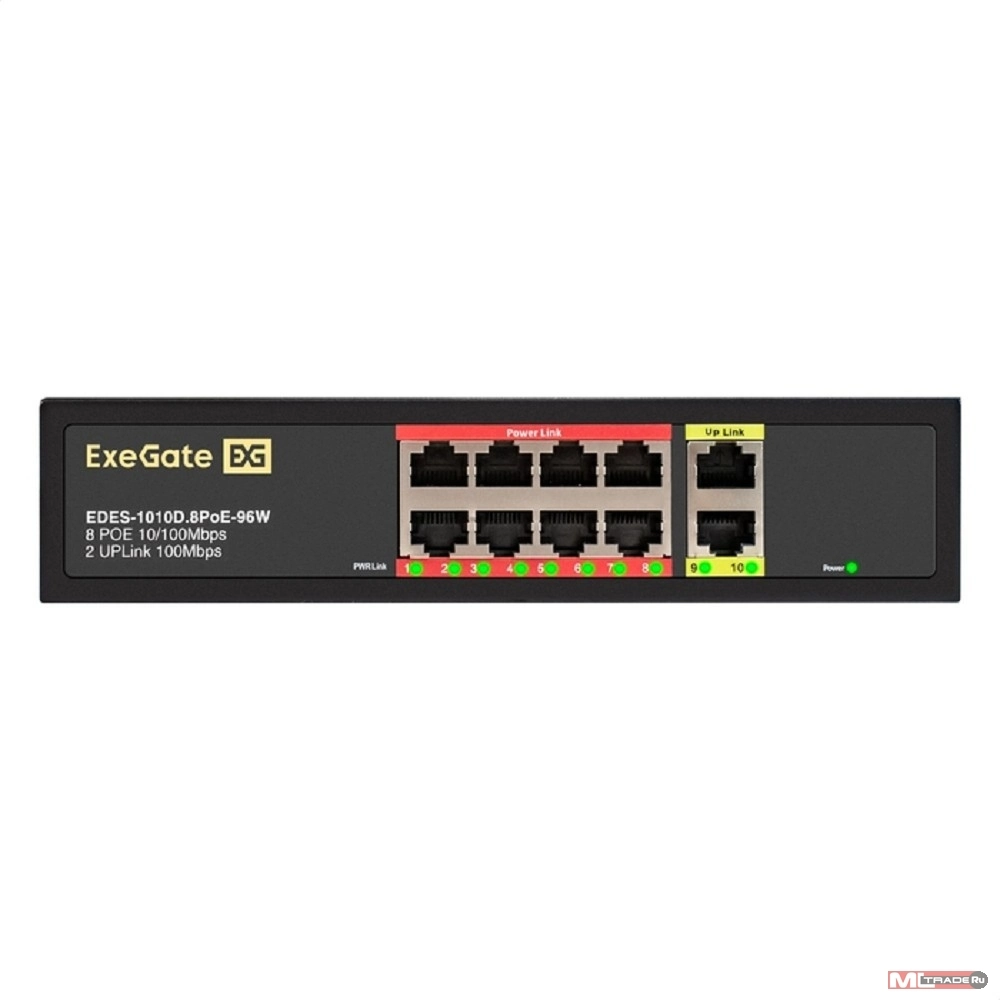 Сетевое оборудование Exegate EX299021RUS Коммутатор неуправляемый ExeGate EDES-1010D.8PoE-96W (10-портовый UTP 10/ 100 Base-Tx: 8 портов IEEE 802.3af (PoE) , мощность PoE: 25W, суммарно 96W, 2 порта RJ45 uplink, настенный/ н