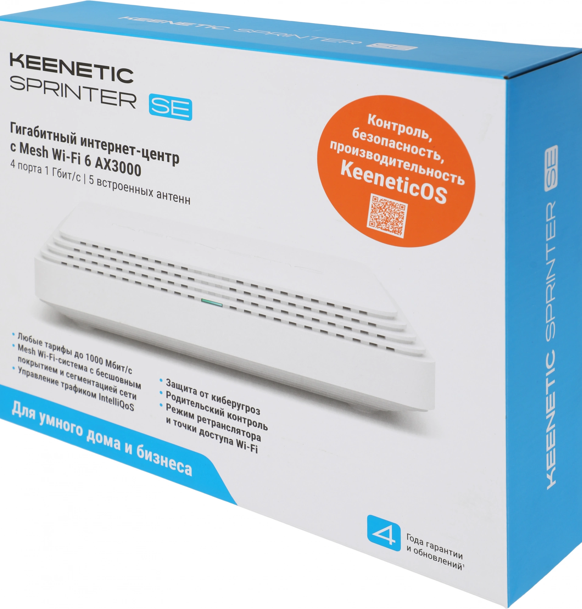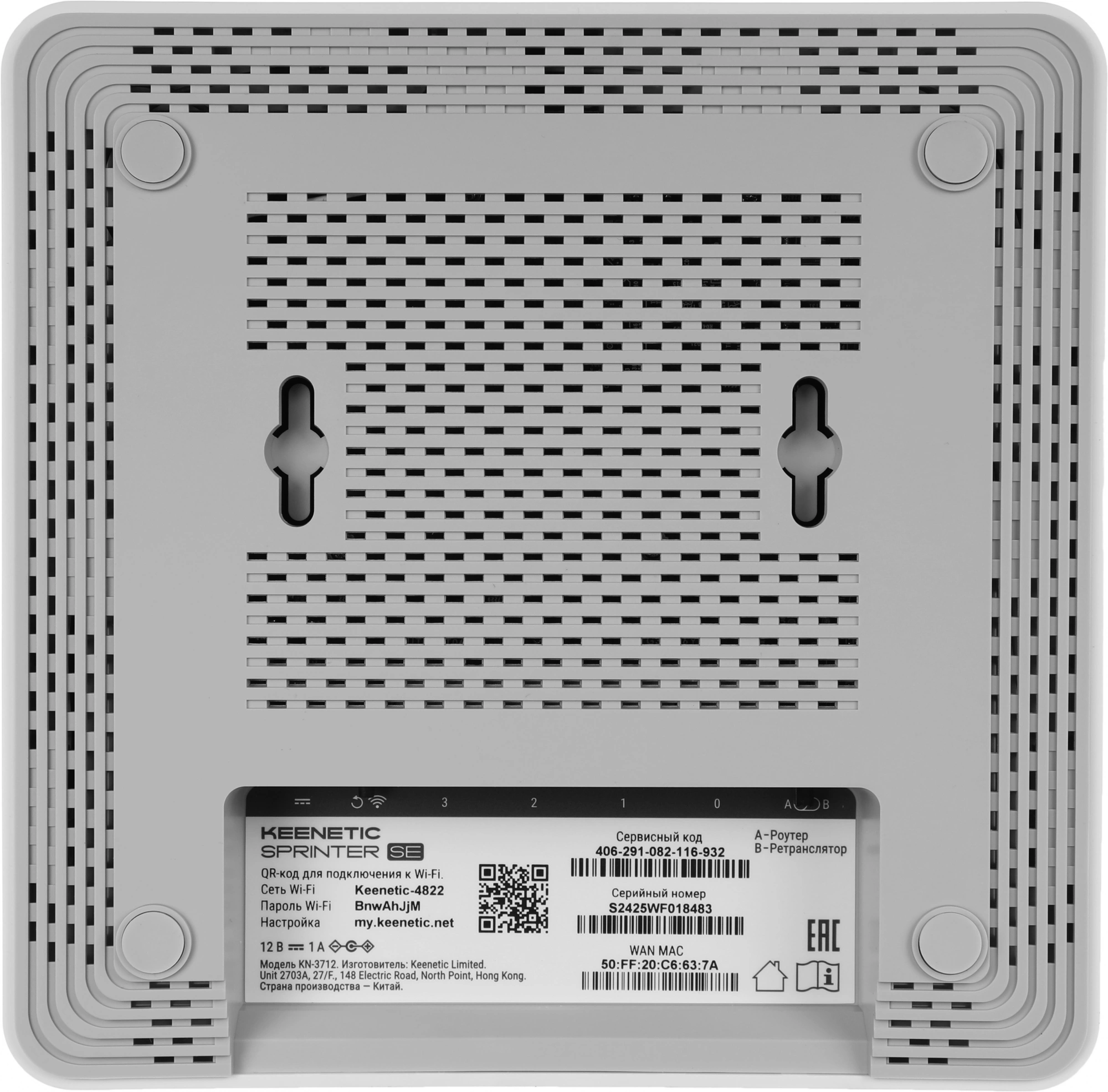 Сетевое оборудование Keenetic Sprinter SE (KN-3712) Гигабитный интернет-центр с Mesh Wi-Fi 6 AX3000, 4-портовым Smart-коммутатором и переключателем режима роутер/ ретранслятор