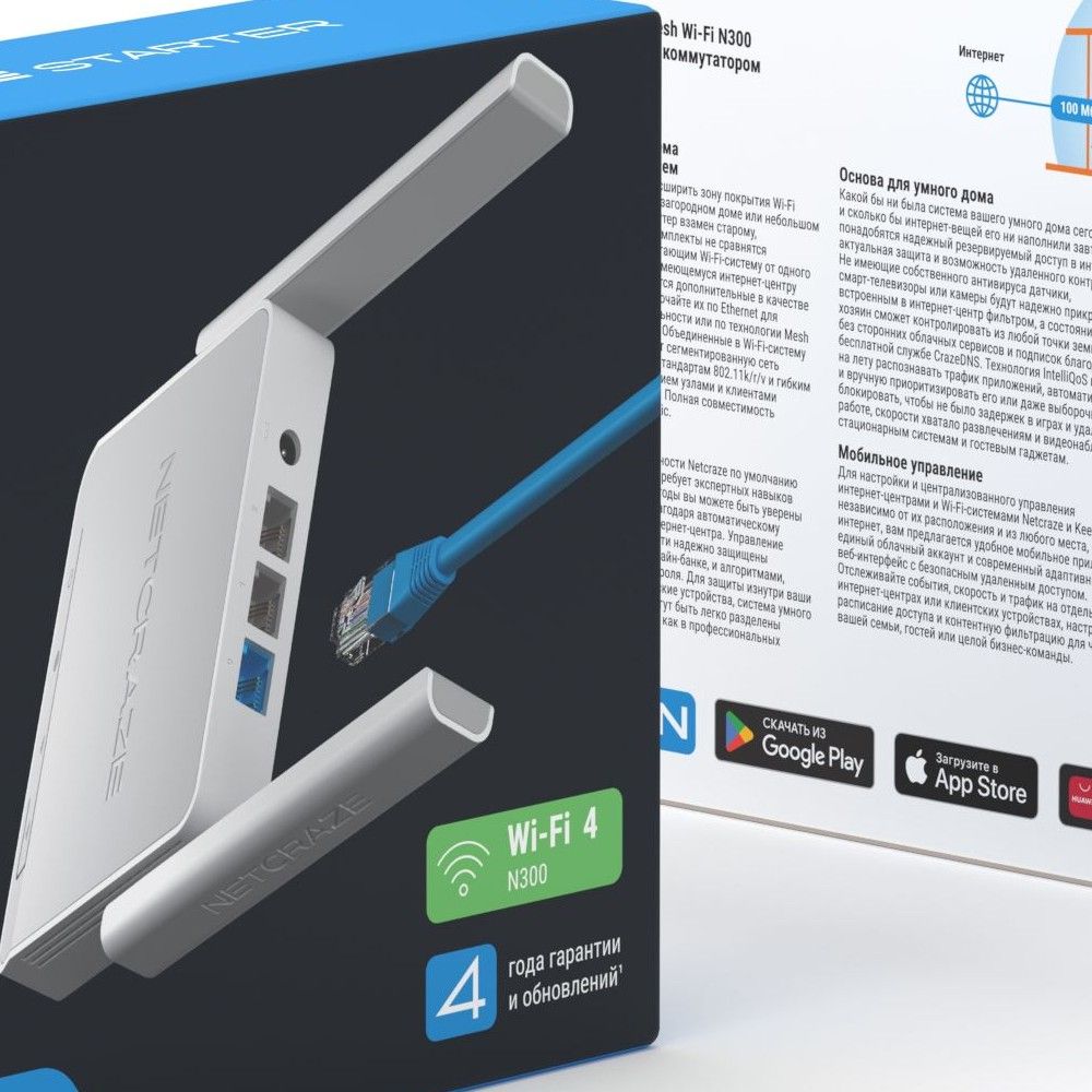 Сетевое оборудование Netcraze Starter (NC-1121) Интернет-центр с Mesh Wi-Fi N300 и 3-портовым Smart-коммутатором